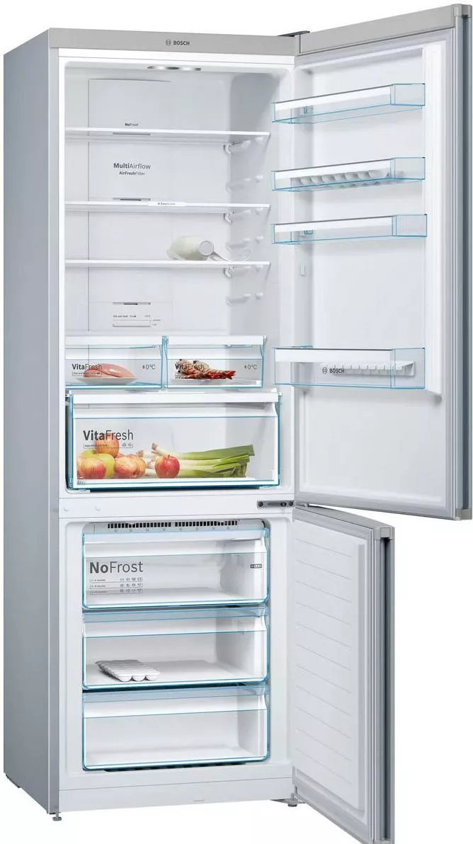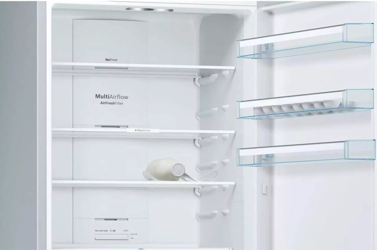 Система охлаждения No Frost предотвращает образование инея в обеих камерах и избавляет от необходимости ручной разморозки. Равномерная циркуляция воздуха за счёт MultiAirflow поддерживает стабильную температуру на всех полках и помогает дольше сохранять свежесть.