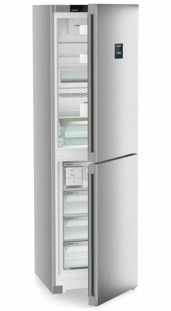 Liebherr CNsfc 573i-22 001 - двухкамерный холодильник с нижней морозильной камерой и элегантной отделкой SteelFinish. Он создан для тех, кто ценит сдержанный дизайн и практичность на каждый день, когда важно быстро найти нужные продукты, поддерживая порядок и чистоту внутри.