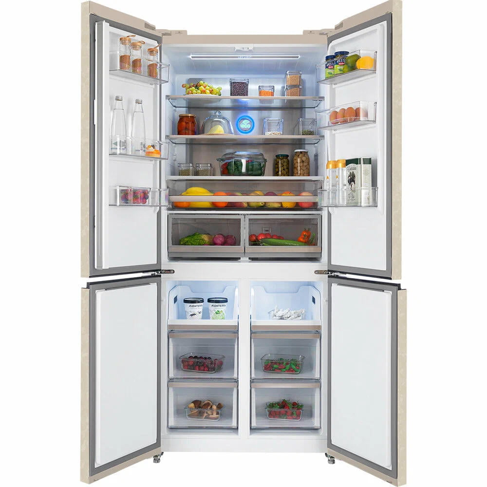 Мембранная технология автоматического поддержания уровня влажности до 90%. В интеллектуальном режиме управления температура внутри холодильника настраивается автоматически. Ящики в холодильной камере выдвижные на направляющих. Один из ящиков в холодильной камере имеет гибкую настройку температуры, где можно выбрать один из предустановленных режимов: напитки, мясо или фрукты.