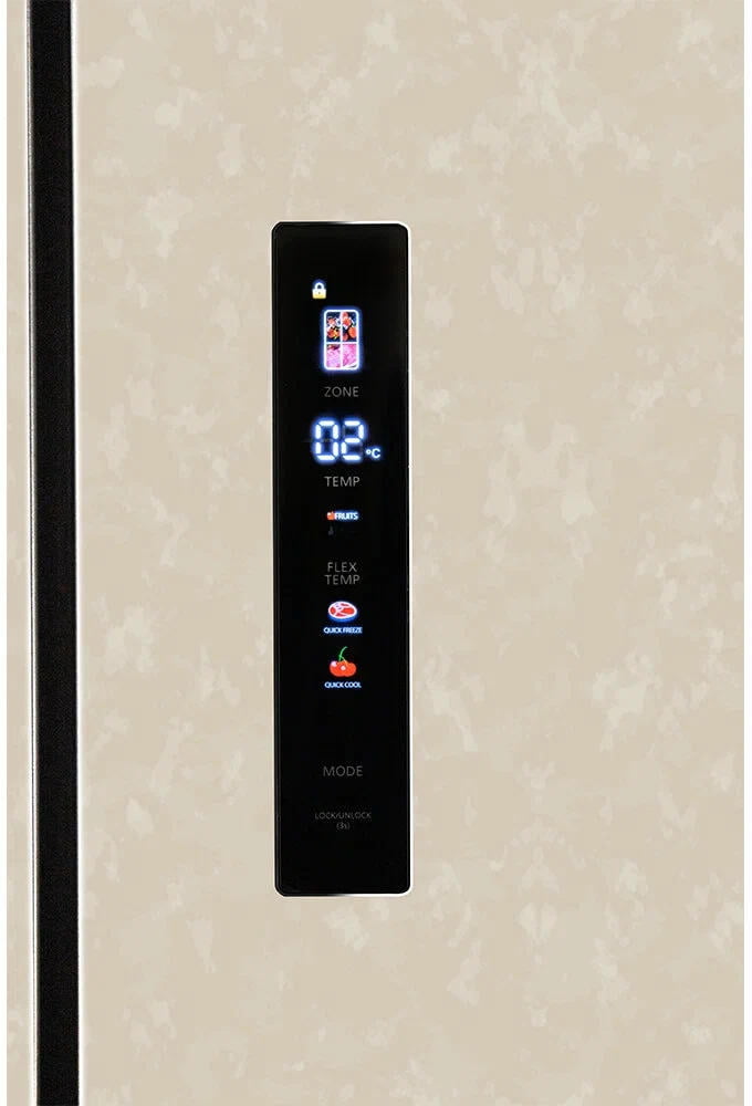 Яркий цветной сенсорный дисплей дает полный контроль над настройками холодильника. Чувствительные к прикосновениям сенсоры на цифровом дисплее позволяют увидеть актуальную информацию по работе холодильника, выбрать оптимальный режим и настроить необходимую температуру с точностью до градуса