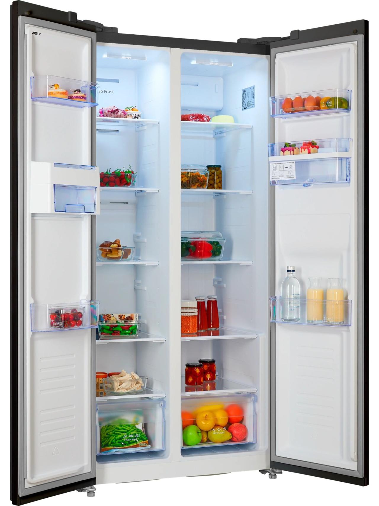 Отдельностоящий инверторный холодильник NORDFROST RFS 484D NFXd типа Side-by-Side с общим объемом 472 литра идеально пойдет для большой семьи и крупногабаритных кухонь.