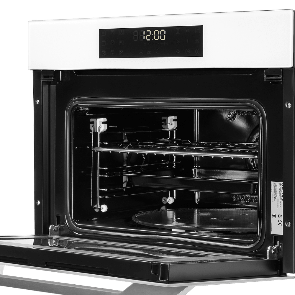 Панорамное стекло дверцы Smart Eye даёт отличный обзор, а «Холодный фронт» повышает безопасность при готовке. При этом объем 44 л остаётся оптимальным для большинства домашних задач — от быстрых будничных блюд до выпечки выходного дня.
