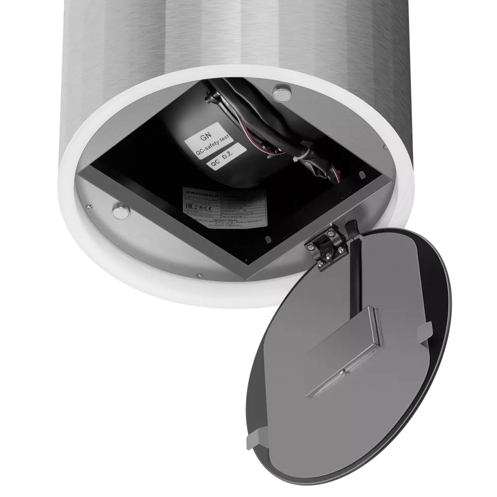 Ищете вытяжку, которая станет акцентом на современной кухне? Кухонная вытяжка MAUNFELD Adelaide 39 Wall нержавеющая сталь сочетает эффектный цилиндрический дизайн с рельефными полосами и стеклянной панелью. Такая форма не только притягивает взгляд, но и упрощает уход за поверхностью.