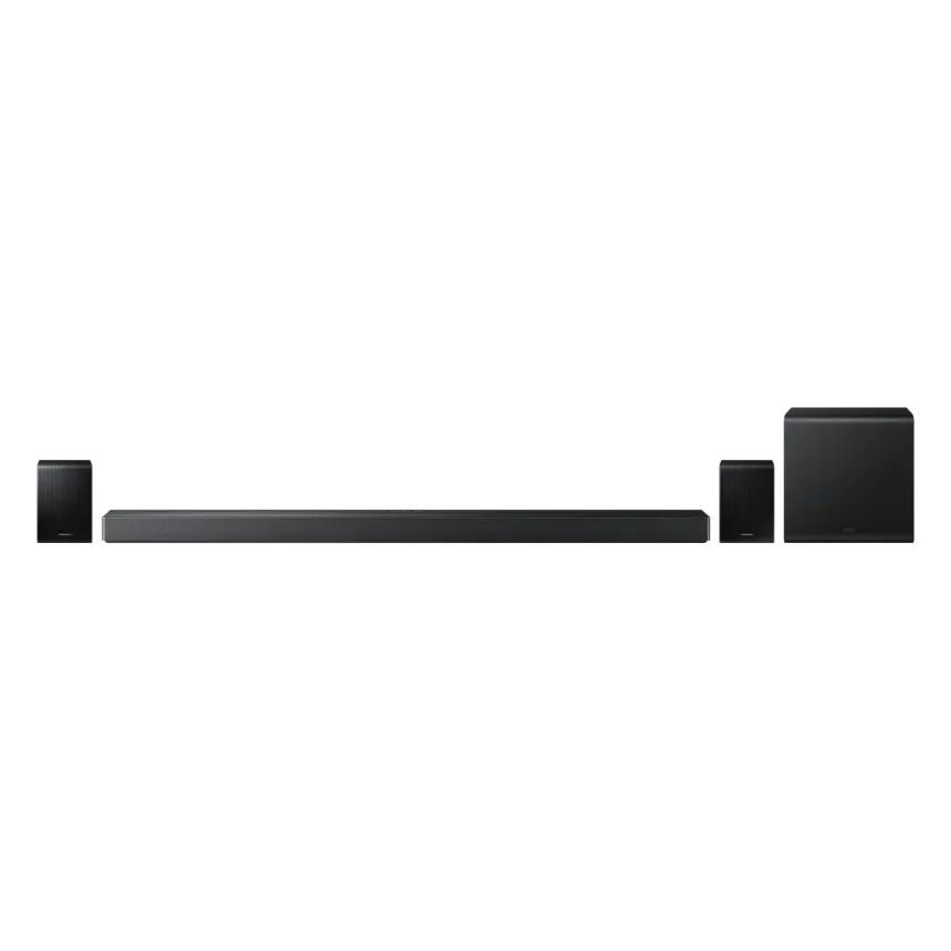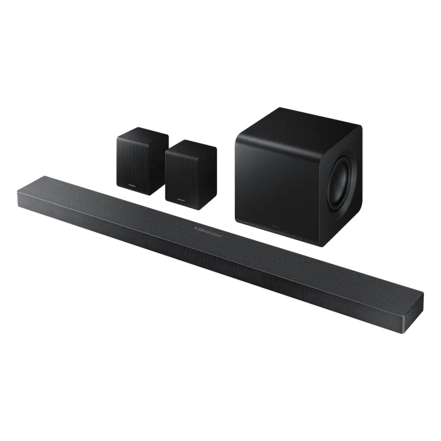 Q-Symphony объединяет динамики саундбара и совместимого телевизора Samsung в единую систему. SpaceFit Sound Pro анализирует акустику помещения и автоматически настраивает звук для оптимального качества. Adaptive Sound адаптирует звуковой профиль в реальном времени в зависимости от контента.