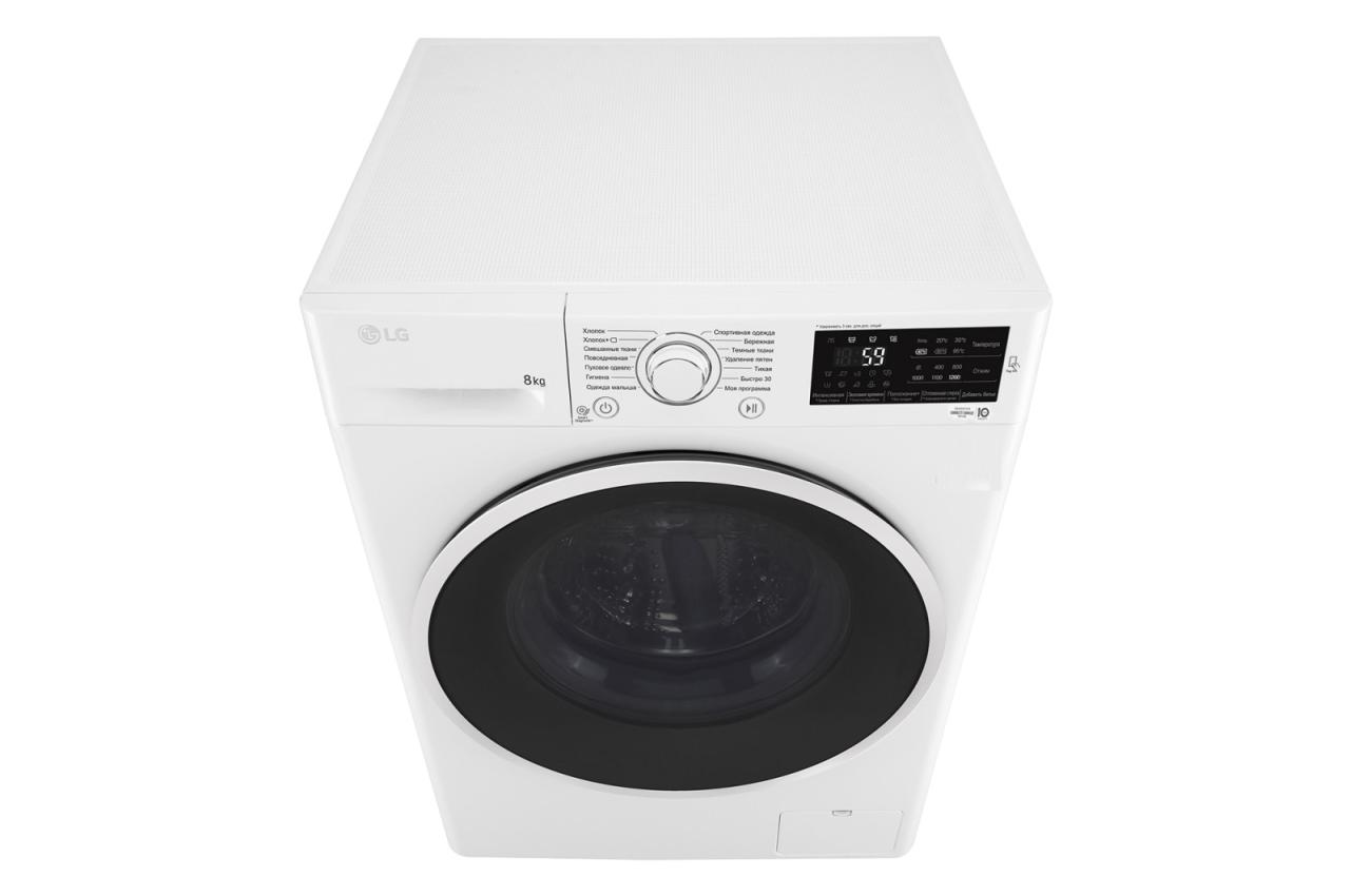 Управление со смартфона и Smart Diagnosis: Поддержка приложения LG ThinQ позволяет удаленно запускать и останавливать циклы, выбирать программы, отслеживать оставшееся время и получать уведомления о завершении стирки. Функция Smart Diagnosis помогает быстро диагностировать неисправности через смартфон без вызова мастера.