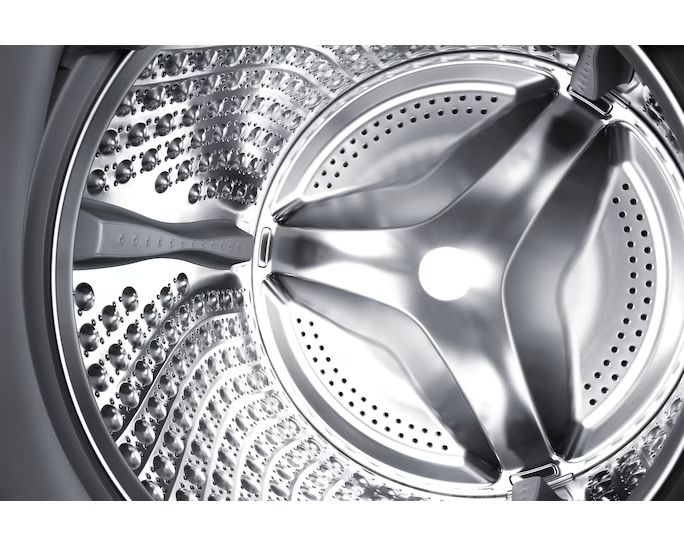 Барабан увеличенного объёма с технологией SpaceMax™ позволяет стирать больше за один цикл, включая объёмные вещи, при сохранении стандартных габаритов корпуса. Это удобно для семей и тех, кто ценит порядок без лишних запусков.