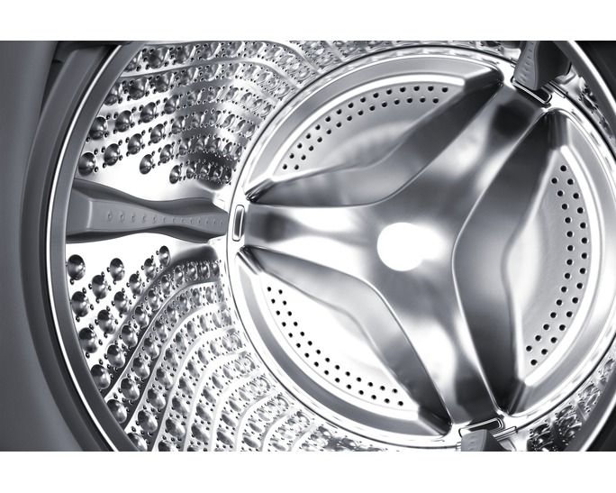 Модель создана для больших задач: загрузка 11 кг позволяет реже запускать стирку и без труда справляться с объемными вещами вроде одеял. Конструкция SpaceMax™ увеличивает полезный объем барабана при стандартной глубине — машина органично впишется в интерьер и не потребует лишнего места.