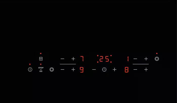 Пауза Stop&Go временно приостанавливает процесс приготовления, например, если нужно отойти от плиты. При активации опции все работающие конфорки переходят на наименьшую ступень нагрева.