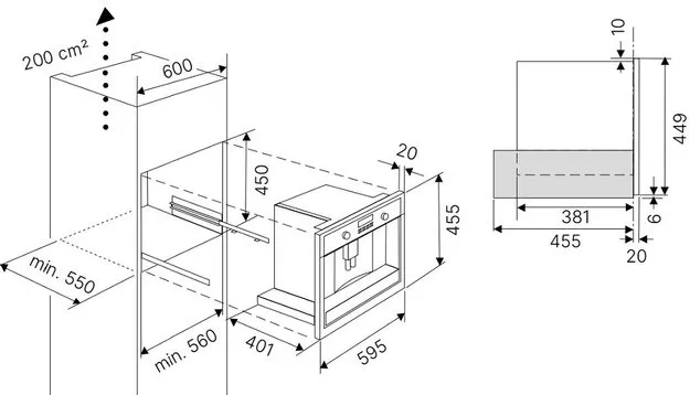 Размеры ниши для встраивания (В×Ш×Г): 450 × 560 × 550 мм