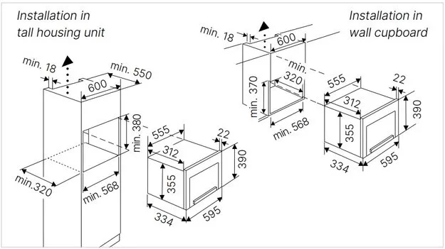 Размеры ниши для встраивания (В×Ш×Г): 37–38 × 56.8 × 32 см
