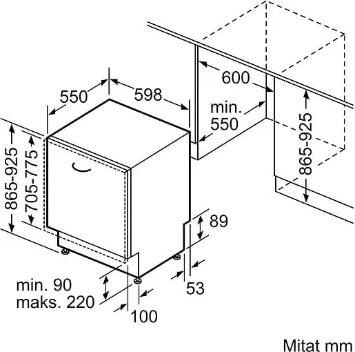 Размеры монтажного отверстия В x Ш x Г (мм): 865 x 600 x 550